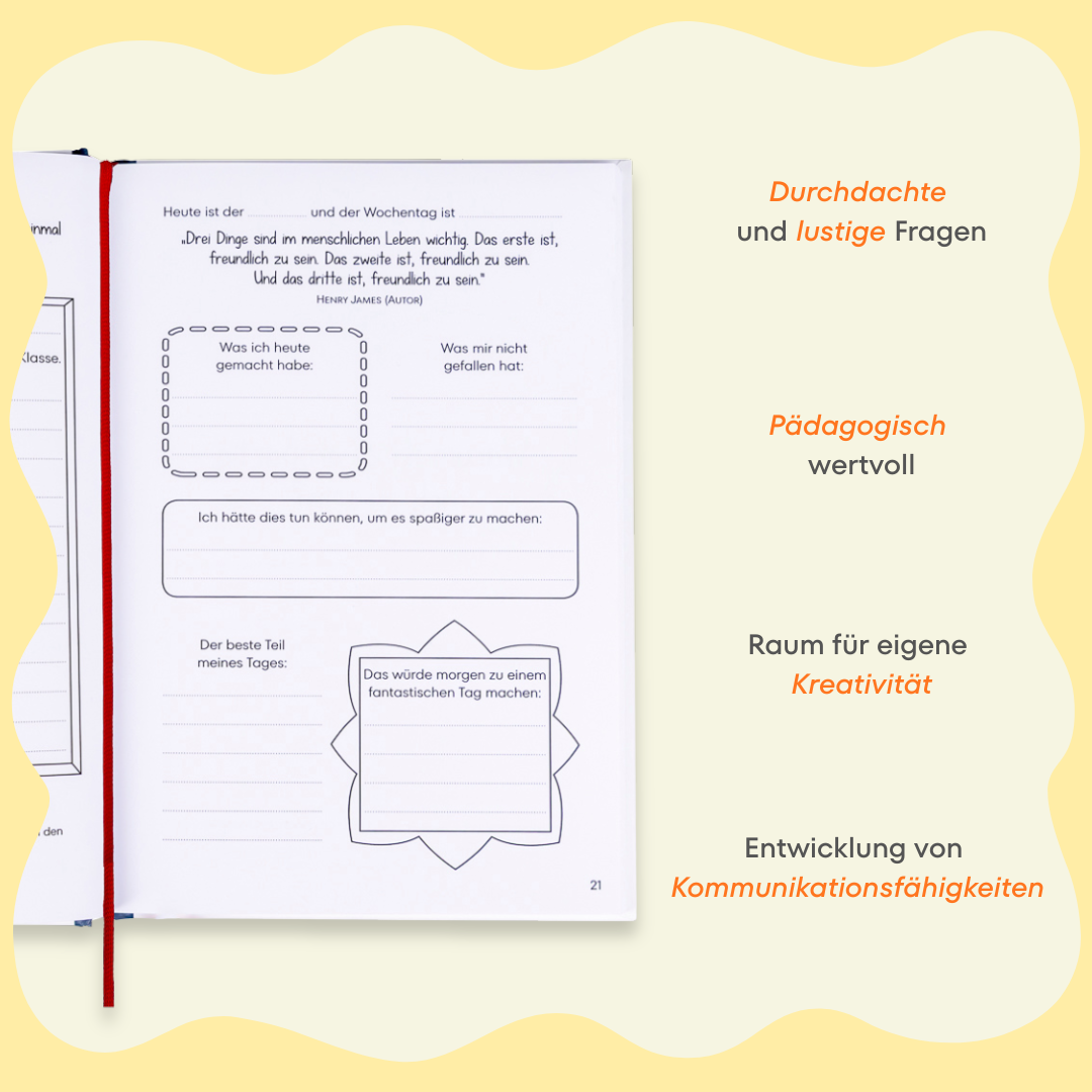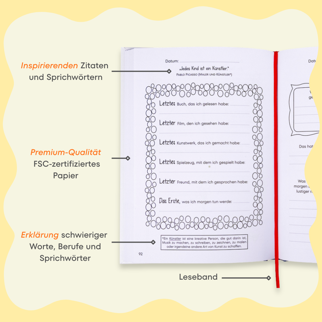 Dieses einzigartige Tagebuch zum Ausfüllen ist prall gefüllt mit inspirierenden Zitaten und Sprichwörtern. Es werden die Berufe der zitierten Personen genannt. Schwierige Wörter, Berufe und Sprichwörter werden erklärt. Das Tagebuch hilft Kindern bei der Entwicklung von Kommunikations- und Problemlösungsfähigkeiten und ermutigt sie, selbst Lösungen für Herausforderungen zu finden.